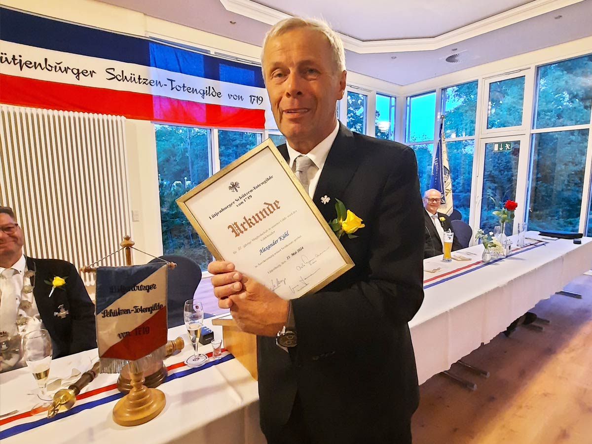 Gildebruder Joachim Dittmer erhielt für 60 Jahre Mitgliedschaft eine Urkunde.